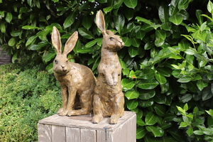 2022hazen in chamotteklei uitgevoerd, na het bakken op 1200 graden gepatineerd, de prijs is per stuk